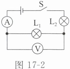 例 2 在如图 17 - 2 所示电路中,当开关$ S $闭合后,电流表无示数,电压表的示数接近电源电压。若电路中只有一处故障,则故障可能是( )