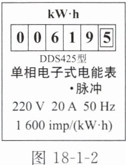 2. 小明家的电能表表盘如图18-1-2所示,小明将家中其他用电器关闭,只让干衣机单独工作,观察到6min内电能表指示灯闪烁了160次,干衣机在这6min内消耗的电能为______kW·h。