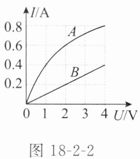 1. 通过小灯泡和定值电阻的电流随其两端电压的变化如图18 - 2 - 2所示。其中灯泡是______(选填“A”或“B”),已知灯泡的额定电压为2 V,则灯泡的额定电功率为______W;把A与B并联接在电压为2 V的电源两端,总电流为______A。A与B串联时,电路中的电流为0.4 A,此时电路的总功率为______W。
