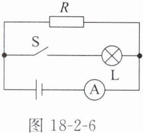 6. 在如图18 - 2 - 6所示的电路中,电阻R为5 Ω。当开关S断开时,电流表的示数为2 A;当开关S闭合时,电流表的示数为3 A,此时小灯泡L正常发光。求: