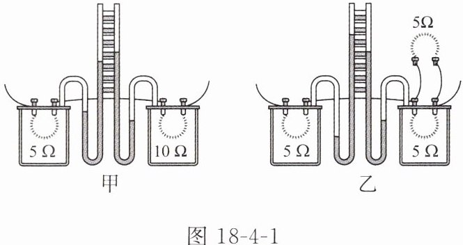 例1 为了探究电流通过导体产生的热量与哪些因素有关,物理学习小组设计了如图18-4-1所示的实验装置(电源、开关未画出)。