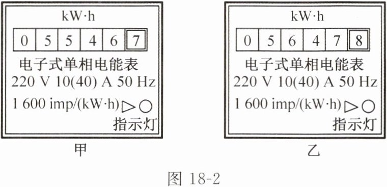 1. 某用户上月底和本月底电能表的示数分别如图 18 - 2 甲、乙所示,电费为 0.60 元/度,结合表盘上的信息判断,下列说法正确的是( )