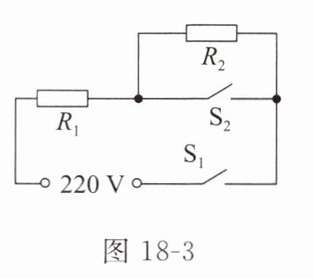 例 3 某电暖器的简化电路图如图 18 - 3 所示,$R_{1}$和 $R_{2}$均为阻值不变的发热电阻。该取暖器有“低温”和“高温”两个挡位,铭牌上的部分信息如下表所示。