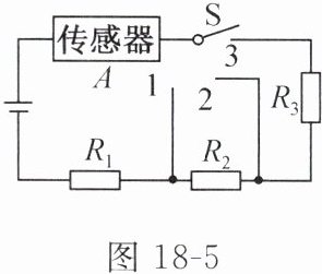 3. 保温箱的简化电路如图 18 - 5 所示,$A$ 为温度传感器,它的作用相当于开关,达到设定温度时自动断开电路;低于设定温度时,自动接通电路。$S$ 是保温箱的温度设定开关,它有三个挡,分别为 $60℃$、$50℃$ 和 $40℃$,加热功率分别为 90 W、72 W 和 45 W。电源电压为 36 V,$R_{1}$、$R_{2}$、$R_{3}$ 都是发热体。