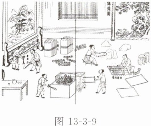8. 传统文化(多选)明朝科学家宋应星所著《天工开物》是世界上第一部关于农业和手工业生产的综合性著作。如图13-3-9所示是书中利用铜来铸造钱币的情景,下列说法正确的是( )