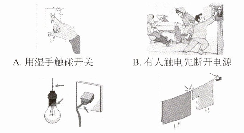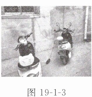 3. 生活应用 电瓶车给人们的出行带来了方便,但不规范的使用方式也带来了一些安全隐患。如图19-1-3所示,私自拉线给电瓶车充电,导线与窗台摩擦会导致绝缘皮破损,若人体因此接触______线,会导致触电事故,救援时应首先______。