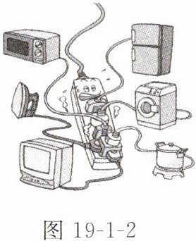2. 图19-1-2所示的插座“不堪重负”,容易引起线路故障,甚至引发火灾,这是因为( )