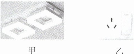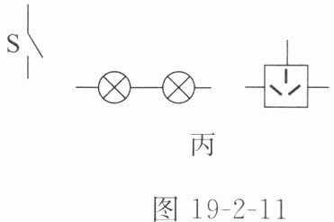 7. 科技应用图19-2-11甲为一款双头嵌入式方形吊灯,由墙壁上的开关控制(如图19-2-11乙所示),开关旁有一个可以独立工作的三孔插座,其简化电路如图19-2-11丙所示。请你将图丙中的电路连接完整,组成正确的家庭电路。