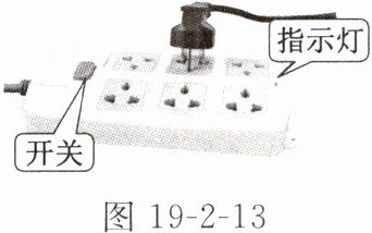 9. 图19-2-13是生活中常用的可移动插线板。闭合开关,插线板上的指示灯才能发光,插孔才能提供工作电压。若指示灯损坏,闭合开关后插孔也能提供工作电压,则插线板内部线路(以两孔插座为例)及其与家庭电路的连接方式是( )