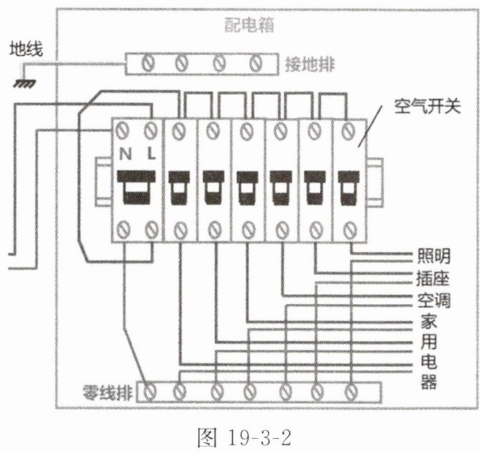 进户线 电能表 总开关 插座 用电器 保险丝 漏电保护器