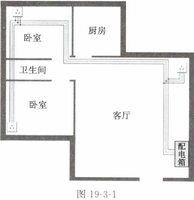 ① 如图 19-3-1 所示,按户型(即房间)设计分支回路。