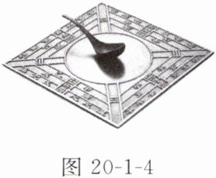 2. 传统文化 图20-1-4是我国古代四大发明之一的指南针——司南,《论衡》中描述:“司南之杓,投之于地,其柢指南。”“柢”是司南的____极,司南静止时“柢”所指的方向是地磁____极,这是因为异名磁极相互____。(前两空均选填“N”或“S”)