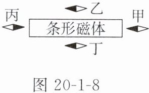 7. 放在条形磁体周围的小磁针静止时的指向如图20-1-8所示,三个小磁针的N极和一个小磁针的S极被涂黑,则S极被涂黑的小磁针是( )