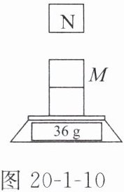 9. 实验创新 一块没有标注N极与S极的条形磁体M竖直放置在电子秤上,如图20-1-10所示,电子秤显示它的质量是20g。现从上方使另一块条形磁体的N极逐渐接近,当N极与磁体M上端距离为5cm时电子秤显示25g,N极与磁体M上端距离为3cm时电子秤显示36g。