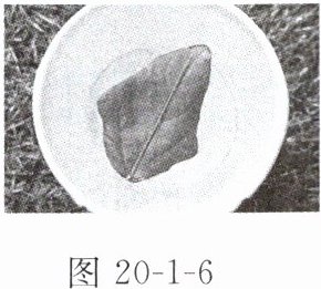 5. 模拟小制作 科技小制作活动中,小明自制了一个指南针,用条形磁体将缝衣针磁化后,将其放在水中漂浮的一片树叶上。多次将树叶轻轻旋转,待树叶静止后,观察到树叶的尖端总是指向南方,如图20-1-6所示。下列说法正确的是( )