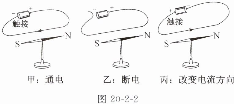 如图 20 - 2 - 1 所示,将一根直导线架在静止小磁针的上方,并使直导线与小磁针平行,接通电路,发现小磁针偏转。下列关于该实验的说法正确的是( )