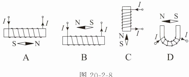 5. 下页图 20 - 2 - 8 中小磁针静止时指向正确的是( )
