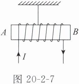 4. (多选)1820 年,安培在法国科学院的例会上做了一个有趣的实验。如图 20 - 2 - 7 所示,将螺线管沿东西方向水平悬挂起来,给螺线管通电,下列说法正确的是( )
