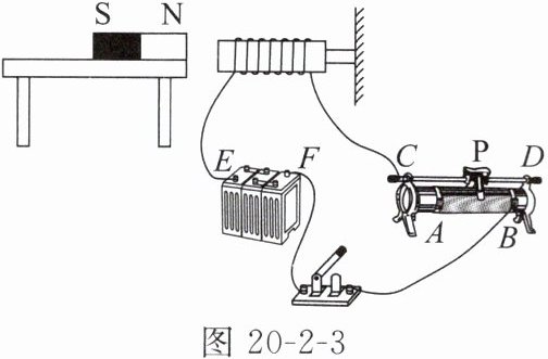 如图 20 - 2 - 3 所示的装置中,闭合开关后,通电螺线管左端与条形磁体的 N 极相互吸引,则电源 E 端为____(选填“正极”或“负极”)。现要使通电螺线管左端与条形磁体的 N 极相互排斥,可以采用的方法是____。