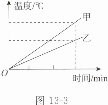 例3 两个相同的容器分别装满了质量相同的甲、乙两种液体。用同一热源分别加热,液体温度与加热时间的关系如图13-3所示,则下列说法正确的是( )