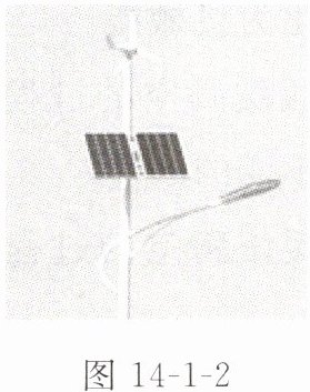 1. 科技应用 为了满足乡镇居民晚上的照明需要,很多乡镇在街道两旁安装了风光互补型太阳能道路灯,查阅资料得知,它是利用风能和太阳能共同发电的装置。如图 14 - 1 - 2 所示,它由小风扇、太阳能电池板、蓄电池、照明灯等部分组成,下列说法合理的是( )