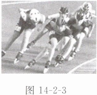 2. 如图14-2-3所示,轮滑选手激烈追逐时,轮滑鞋与地面摩擦温度升高。下列汽油机的四个冲程中,能量转化与其相同的是( )