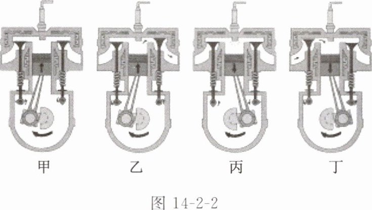 例2 汽车已经成为现代生活中不可缺少的一部分,以汽油机为发动机的汽车仍是目前市场的主力。图14-2-2是四冲程汽油机的工作循环示意图,下列说法中正确的是( )