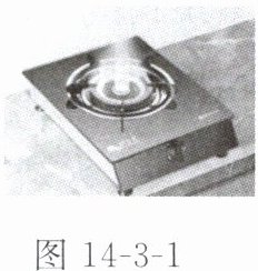 例2 生活应用 我国家用燃气灶具能效限定值及能效等级标准将燃气灶的热效率定为$ 3 $级(如下页表)。其中,达到$ 1 $级、$ 2 $级能效的产品为节能产品,而达不到$ 3 $级要求的产品不允许出厂。灶具新能效标准实施后,打着节能旗号的不节能产品将逐渐被清出市场。小明在家里用台式燃气灶(大气式,如图14-3-1)烧水,将锅内$ 2 kg 温度为 20 ^{\circ}C $的水烧开(标准大气压下),共用了$ 0.04 m^3 $的天然气。[天然气的热值为$ 2.8 × 10^7 J/m^3 $,水的比热容为$ 4.2 × 10^3 J/(kg·^{\circ}C) $]