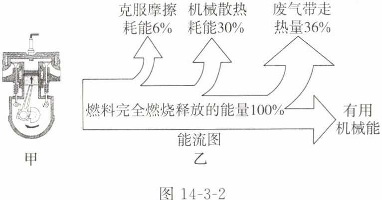 2. 汽车是现代生活中最常见的一种交通工具,图14-3-2甲、乙分别是汽油机某冲程的示意图及能量流向图。下列有关说法正确的是( )