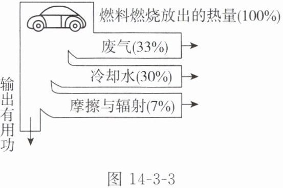 3. 某同学阅读了某汽车发动机的说明书后,将内燃机的能量流向绘成图14-3-3,汽油的热值为$ 4.6 × 10^7 J/kg $,下列说法正确的是( )