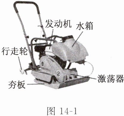 1. 科技应用(多选)如图 14 - 1 所示是一种常用“柴油平板夯机”,广泛应用于路面施工、场地填土等工程。使用时柴油发动机提供动力,激荡器带动夯板上下运动。下列关于汽油机和柴油机主要区别的说法正确的是( )