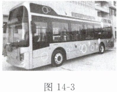 2. 前沿科技 氢内燃汽车以氢气为燃料产生动力。如图 14 - 3 所示的氢能源公交车属于氢内燃汽车,目前在我国多地投入使用。氢具有清洁无污染、热值高等优点,被认为是 21 世纪最理想的能源。已知$q_{氢}= 1.4×10^8$ J/kg,通过计算回答: