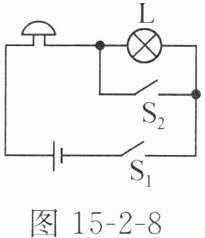 3. 一种声光报警器的电路如图15-2-8所示。闭合开关$S_1$和$S_2$后会出现的现象是( )