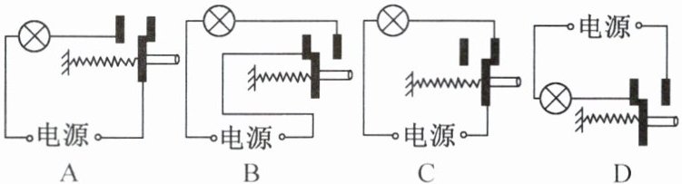 9.C [解析]关门时,弹簧压缩,此时灯泡不亮;开门时,弹簧恢复原状,开关与灯泡所在电路接通,灯泡亮。分析可知,能表示冰箱门打开状态的是C。