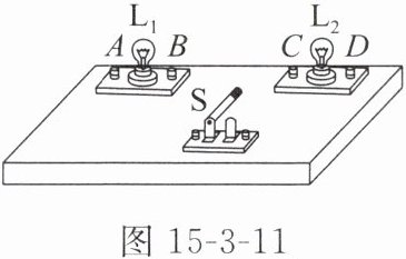 (1)有一部分元件在木盒内的实物电路如图15-3-11所示。闭合开关时,两只小灯泡都亮了,断开开关,两只小灯泡又同时熄灭。