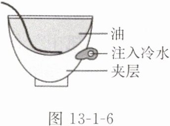 8. 传统文化我国俗语“不是省油的灯”常用于形容工于心计的人,与古人凭借智慧做出的“省油灯”相对应。陆游在《老学庵笔记》中写道“蜀中有夹瓷盏,注水于盏唇窍中,可省油之半”。这种油灯借助瓷盏的夹层结构(如图13-1-6)以达到省油的目的。相对于没有夹层的油灯,往夹层中注水能省油是因为水的比热容大于____,灯油能向夹层的水中____(选填“吸收”或“释放”)更多的热量,使灯油的温度降低,减少灯油因____(选填“燃烧”或“蒸发”)而带来的损失。