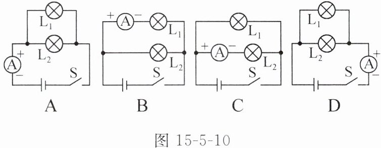 3. 在图 15 - 5 - 10 所示的电路中,电流表能够测出电路中的总电流的是( )