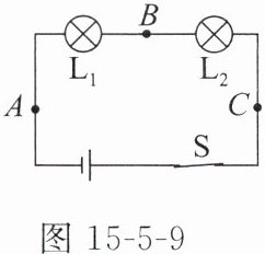 2. 如图 15 - 5 - 9 所示的电路中,$ L_2 $ 比 $ L_1 $ 亮,小明猜想是因为 $ L_2 $ 更靠近电源正极,电流更大。下列做法不能验证其猜想的是( )