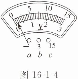 3. 某同学用有 3 V 和 15 V 两个量程的电压表来测量电压时,电压表“ - ”接线柱已经接入电路,在用 15 V 量程进行试触时,发现指针的位置如图 16 - 1 - 4 所示,则他下一步的操作应该是( )