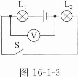 2. 如图 16 - 1 - 3 所示的电路中,开关 S 闭合时,电压表测量的是( )