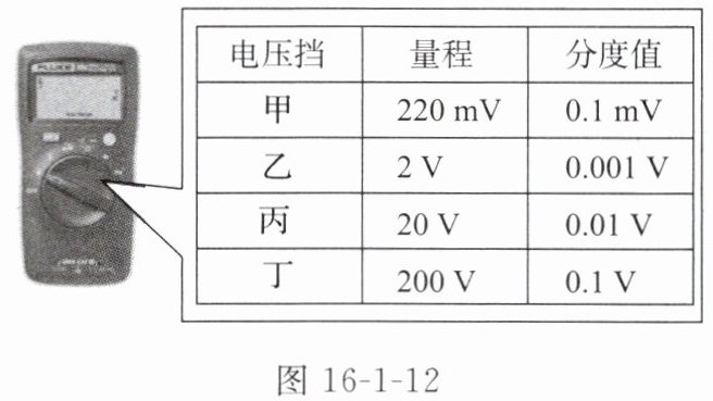 分析实验数据后,小明认为该电压表的精确度仍不足,于是借来如图 16 - 1 - 12 所示的多用电表,应选择的挡位是_________,理由是 _________。