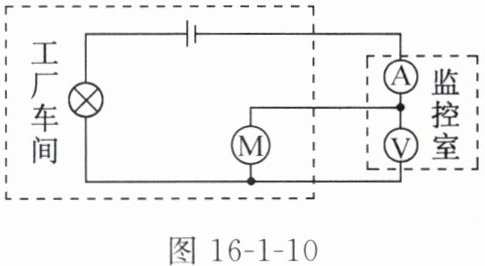 9. 用电器的工作情况可由其两端的电压反映出来,因此用电压表测出某用电器两端的电压,就可以对用电器进行监控。某工厂的一部分电路如图 16 - 1 - 10 所示,则监控室的电压表监控______的工作情况,电压表的______(选填“上”或“下”)端为“ + ”接线柱。