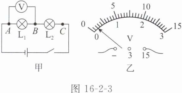 1. 探究“串联电路的电压关系”的实验电路如图16-2-3甲所示。