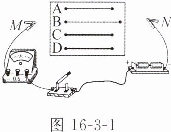 例 图 16 - 3 - 1 是“探究影响导体电阻大小的因素”的实验装置图,下表给出了可供选择的几种导线,这几种导线分别用 A、B、C、D 表示。