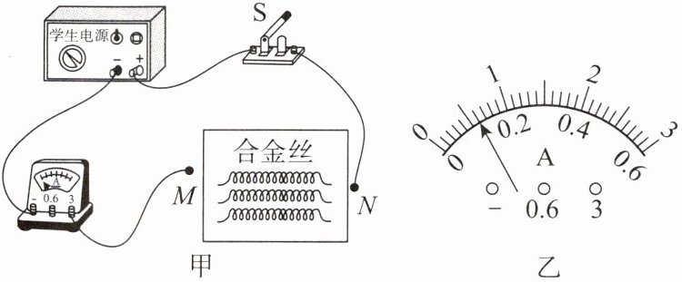 (4) 图 16 - 3 - 6 乙是将一根合金丝接入电路时电流表的示数,请将其填入表格中。