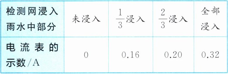 ②根据表中的现象和数据,解释雨刮器刮水的速度能够随着雨量的大小而相应地发生变化的原因:雨量变大,检测金属网浸入雨水中的部分变大,______。