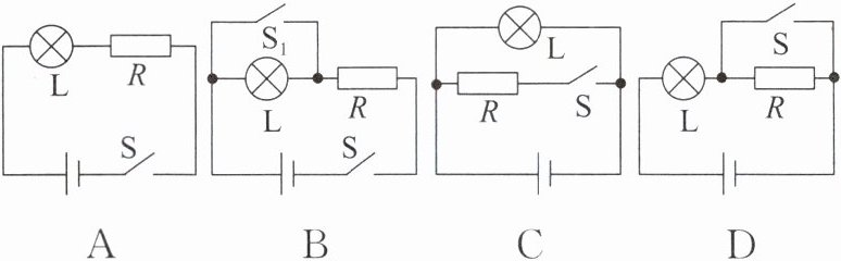 (4)为了提醒驾驶员汽车后备箱的开、闭情况,汽车上设置了“后备箱指示灯”以提醒驾驶员。后备箱关好时,相当于闭合开关,指示灯不亮;后备箱未关好时,相当于断开开关,指示灯亮。下列电路设计符合要求的是______。