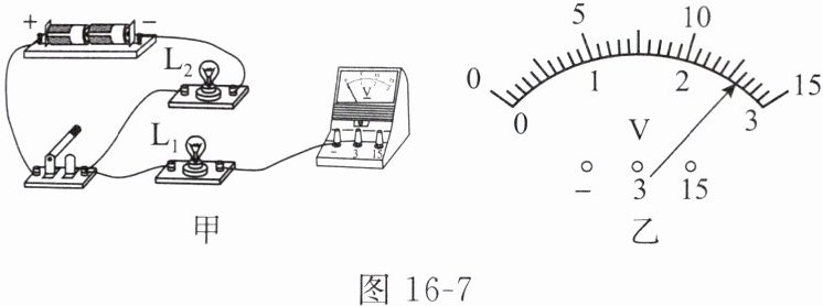 (1)用笔画线代替导线,在图 16 - 7 甲中把电路连接完整,要求电压表测量灯 $L_1$ 两端的电压。