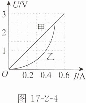 7. (多选)图 17 - 2 - 4 是电阻器甲和乙的$I - U$图像,下列相关说法正确的是( )