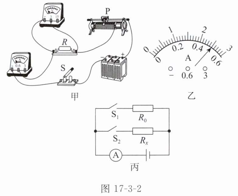 (2) 实验过程中,某次电压表示数为2V,电流表示数如图17-3-2乙所示,则此时$ R_x $的阻值为______。